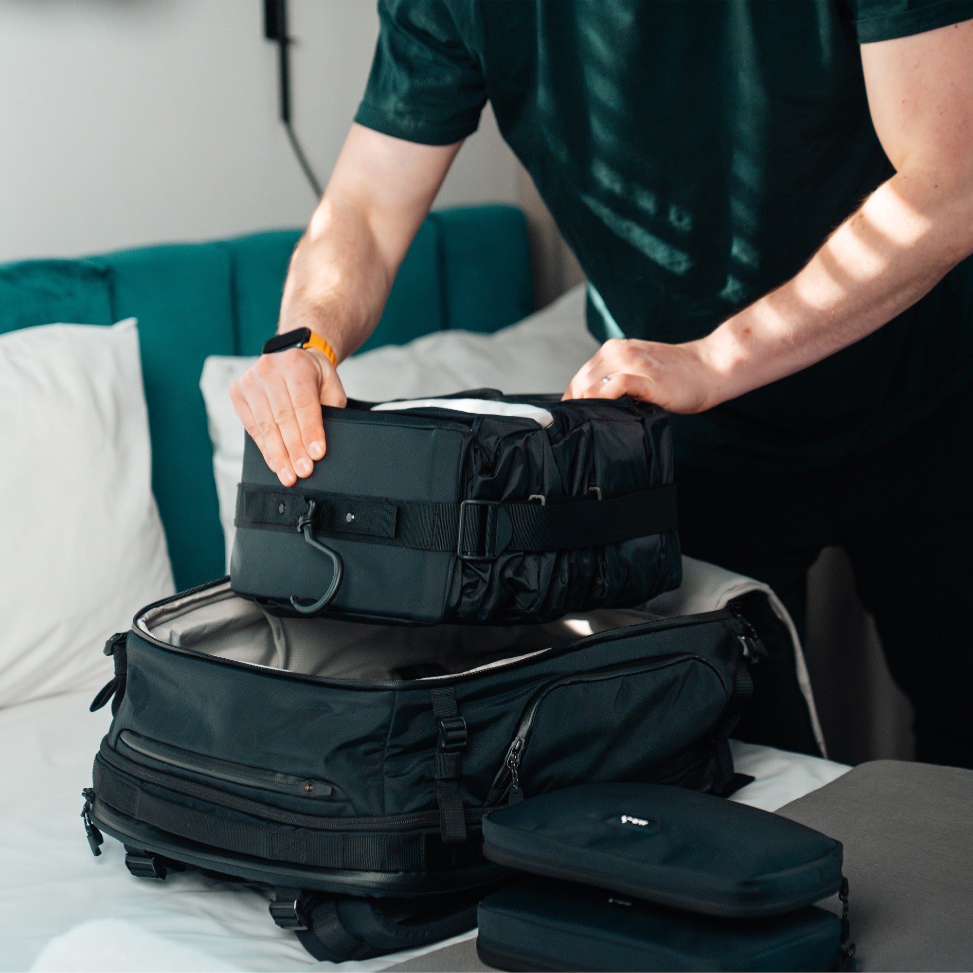 Maximise packing efficiency with a compressible hanging wardrobe. Three compartments and a space-saving design keep clothes organised and ready to wear.